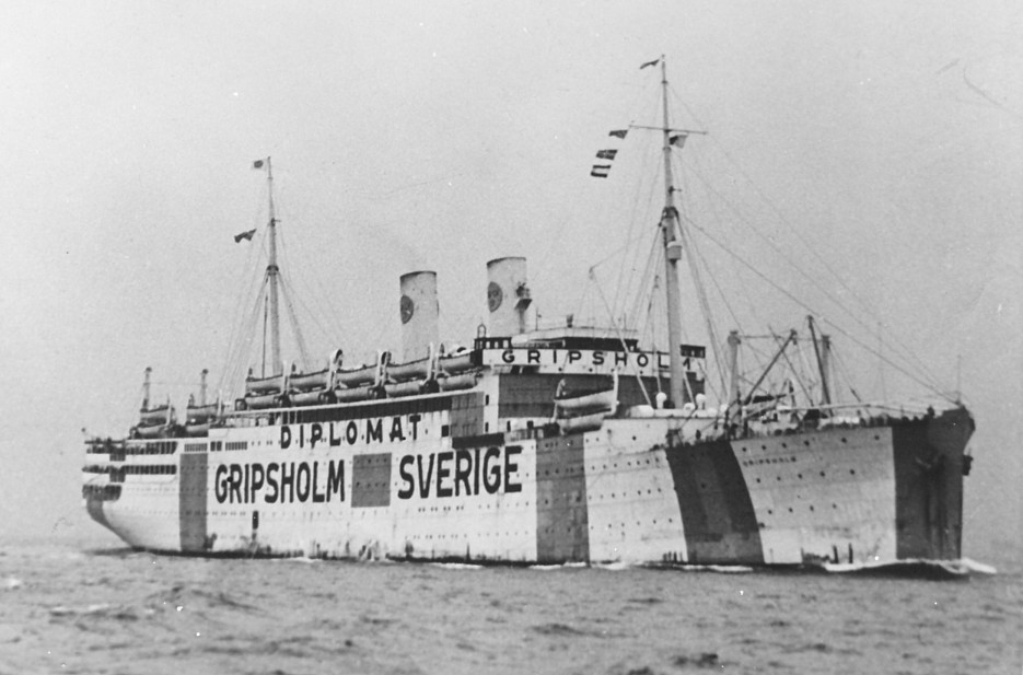 The Swedish liner, the SS Gripsholm was chartered to the US State Department during World War II, from 1942 to 1946, as an exchange and repatriation ship, under the protection of the Red Cross, hence the term “mercy ship”. The Gripsholm also carried mail and food packages to prisoners of war.